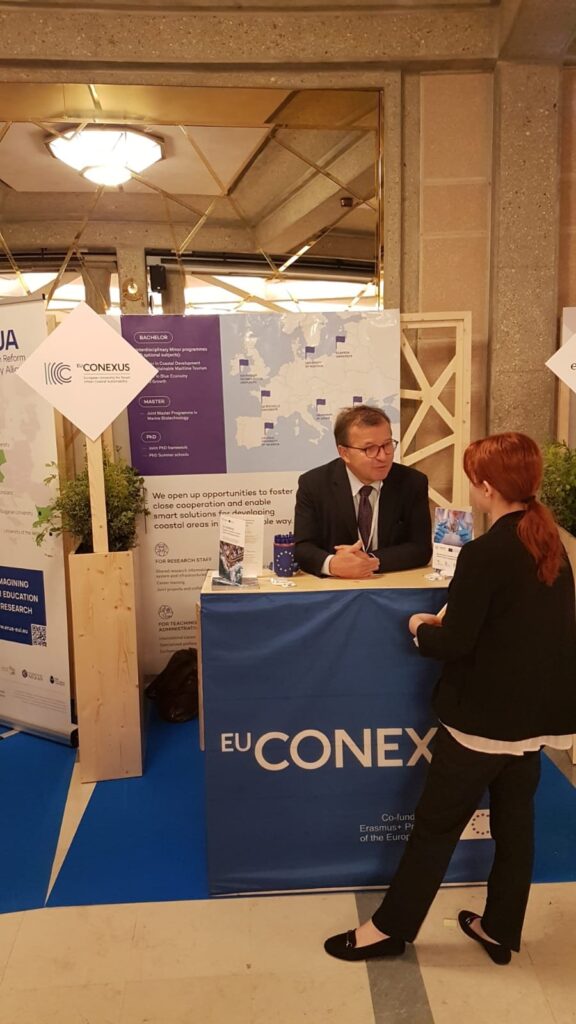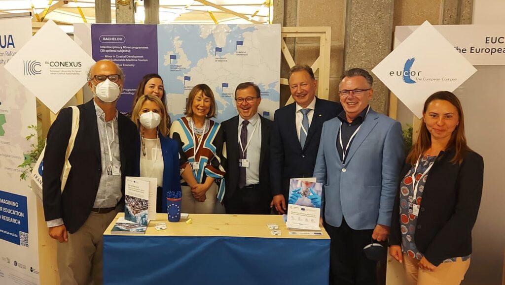 Europos universitetų miestelyje Klaipėdos universitetas rektorius prof. dr. Artūras Razbadauskas buvo vienas iš penkių panelinės sesijos pranešėjų ir EU-CONEXUS pristatančioje sesijoje dalinosi įžvalgomis apie tarptautinio bendradarbiavimo Europos universitetų aljansų kontekste svarbą studentams, institucinių strategijų plėtrai ir nacionalinio ugdymo sistemų modernizavimui.