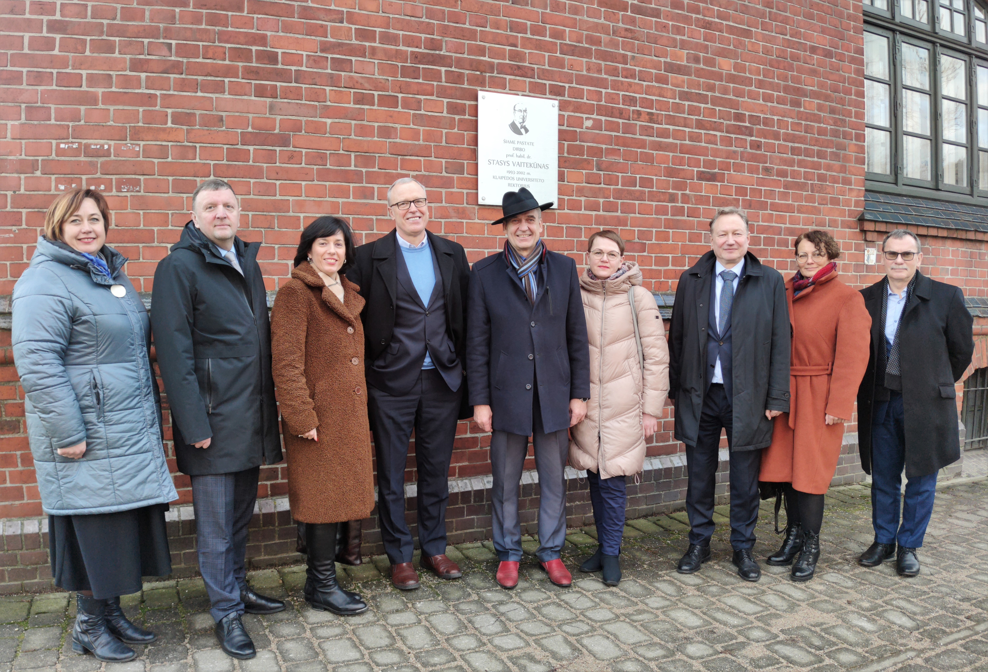 Atsisveikindami nusifotografavo KU miestelyje prie atminimo lentos kraštiečiui, mokslininkui–geografui, buvusiam rektoriui, Senato pirmininkui prof. Stasiui Vaitekūnui, daug nuveikusiam, kad Universitetas uostamiestyje išaugtų ir sutvirtėtų.