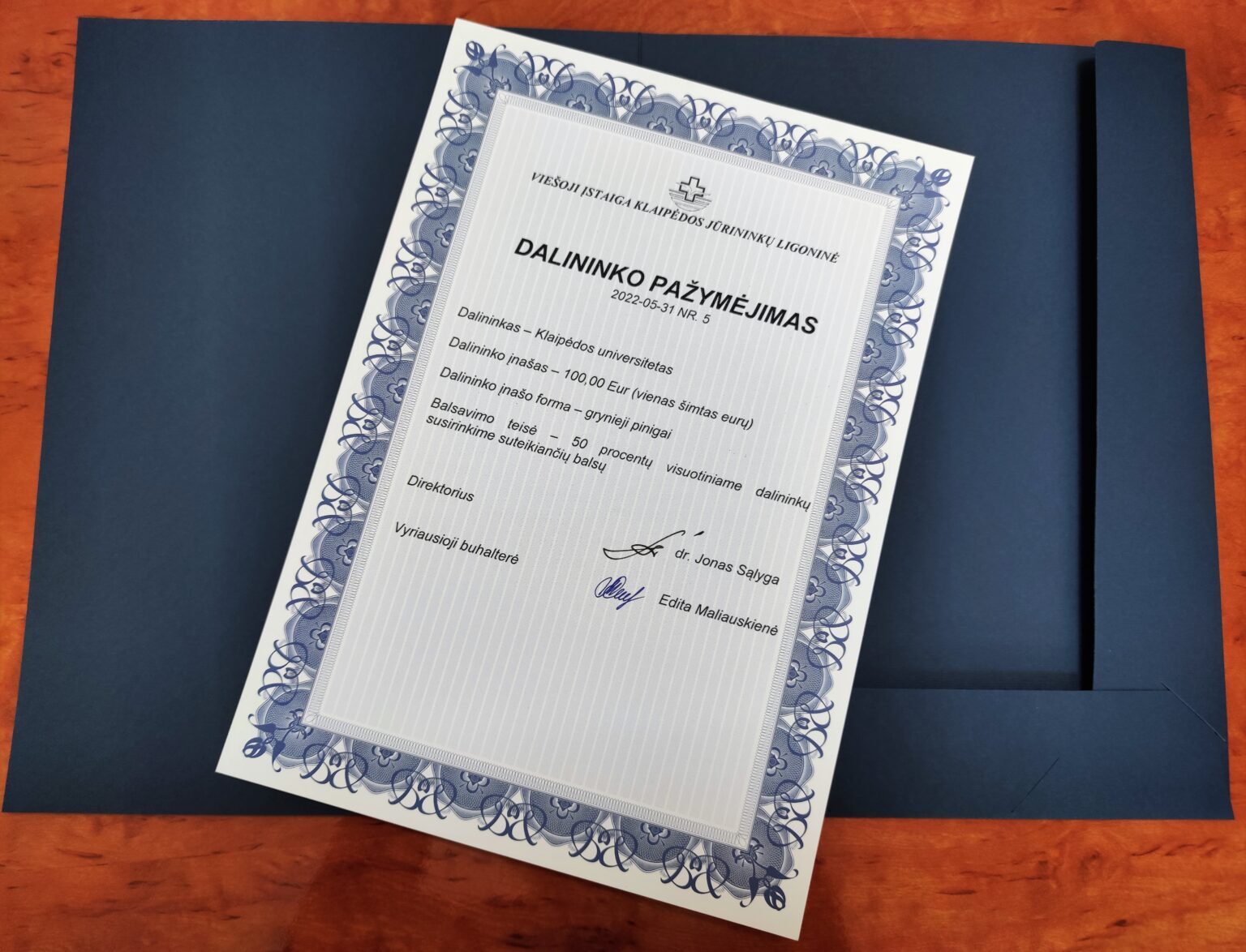 Pagal LR Vyriausybės nustatytą tvarką iki š. m. birželio 1-osios KU turi tapti ir kitų dviejų būsimosios Klaipėdos universiteto ligoninės dalimi būsiančių gydymo įstaigų – Klaipėdos universitetinės ligoninės ir Palangos reabilitacinės ligoninės – dalininku.