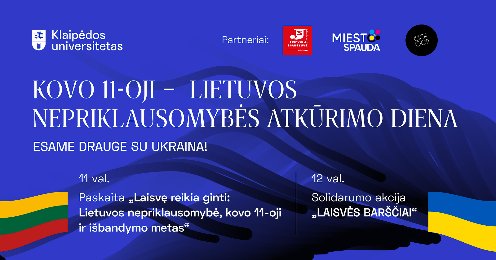 Į šventinį kovo 11-osios šurmulį jungiasi ir daugiatautė Klaipėdos universiteto bendruomenė. Lietuvai svarbią dieną KU kviečia į istoriko dr. Vyganto Vareikio paskaitą „Laisvę reikia ginti: Lietuvos Nepriklausomybė, Kovo 11-oji ir išbandymo metas“, o po jos – į solidarumo su Ukraina ir jos žmonėmis akciją „Laisvės barščiai“. Barščius pagal tradicinį ukrainietišką receptą gamins „Čiop-čiop Klaipėda“ šefė Laura Brekke.