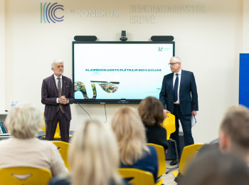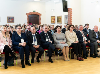 Absolventus taip pat pasveikino KU tarybos pirmininkas Arnoldas Šileika bei KU studentų sąjungos prezidentas Augustas Andruška.