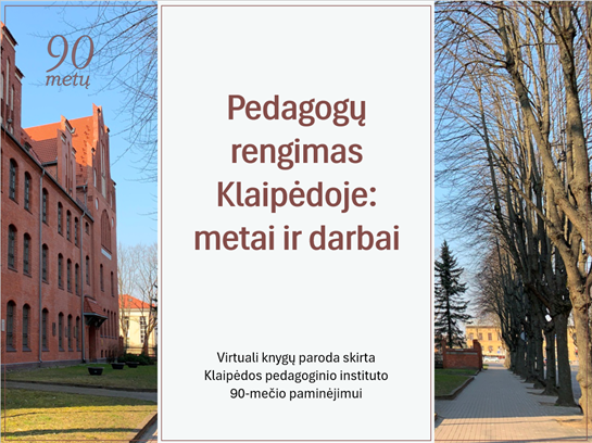 Minėdami Klaipėdos pedagoginio instituto 90-metį, pristatome pedagogų rengime dalyvavusių ir dalyvaujančių dėstytojų parengtų publikacijų virtualią parodą.