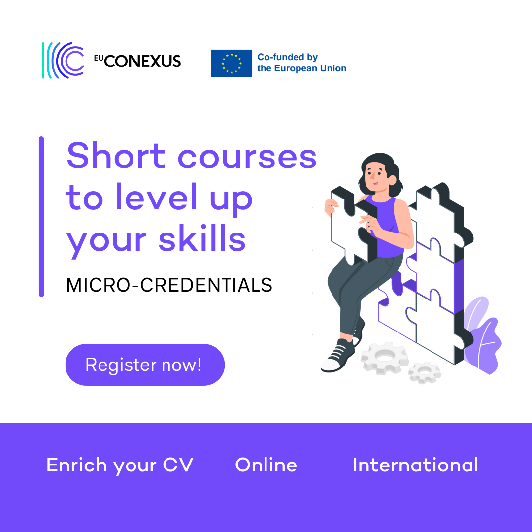 Kviečiame registruotis į studijų mikromodulio kursus, kuriuos siūlo EU-CONEXUS partneriai. Tai trumpi, specializuoti kursai, kurių  temos parinktos pagal pasaulio tendencijas bei poreikį darbo rinkoje.