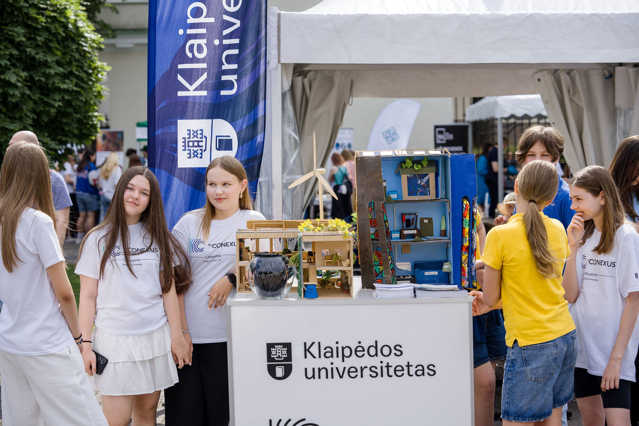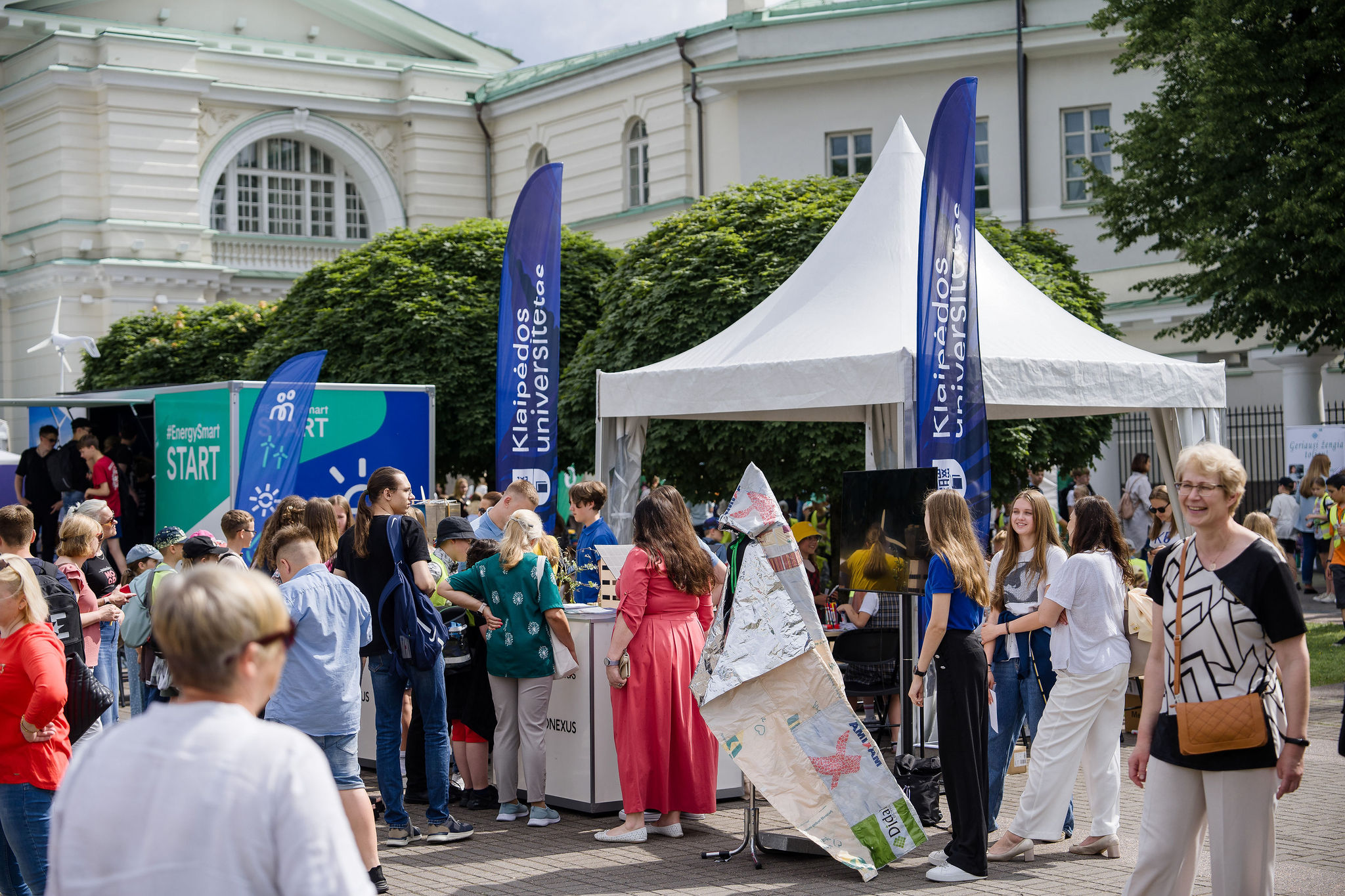 Renginyje, vykusiame minint Pasaulinę aplinkos apsaugos dieną, projektą „Palapinė-apsiaustas-miegmaišis“ moksleiviams, mokytojams ir kitiems lankytojams pristatė šių metų EU-CONEXUS organizuoto konkurso „Think Smart, Create Green“ nugalėtojai – S. Dacho progimnazijos moksleiviai. Komanda konkursui sukūrė palapinę-apsiaustą-miegmaišį. Moksleiviai skelbė pakuočių rinkimo akciją, tvarkė, plovė riebaluotas pakuotes. Iš jų buvo pasiūtas pirmasis sugalvoto produkto sluoksnis, kitas buvo siuvamas iš nesuyrančių plastiko maišelių, vidurys užpildytas naudotais medvilniniais audiniais. Toks apsiaustas gali gelbėti žmones kaip palapinė, pavyzdžiui, ištikus žemės drebėjimui, gali šildyti ir saugoti nuo lietaus kaip apsiaustas ar atlikti miegmaišio funkciją.