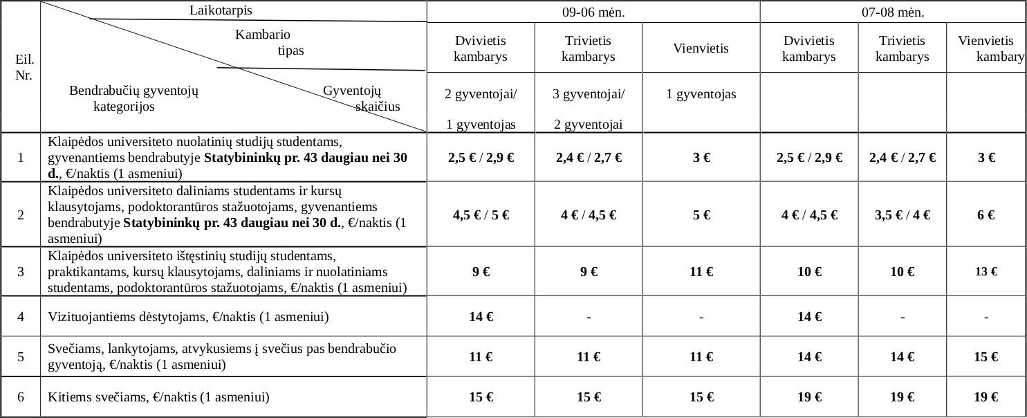 Gyvenantiems pagal 1-2 punktus (t. y. ilgiau nei mėn.), patalynės komplekto kaina - 45,00 EUR.