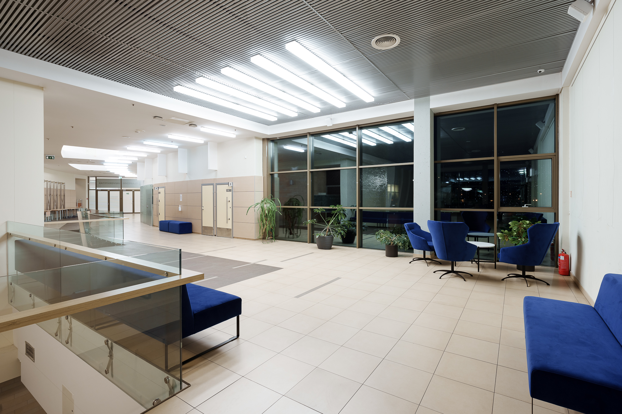 Konferencijų salė – 70 vietų (papildomai fojė prie jos). Konferencijų salėje galima organizuoti sinchroninį vertimą keliomis kalbomis. SalėJE yra Wi-fi ir projektorius, galima pastatyti rašymo lentas. |